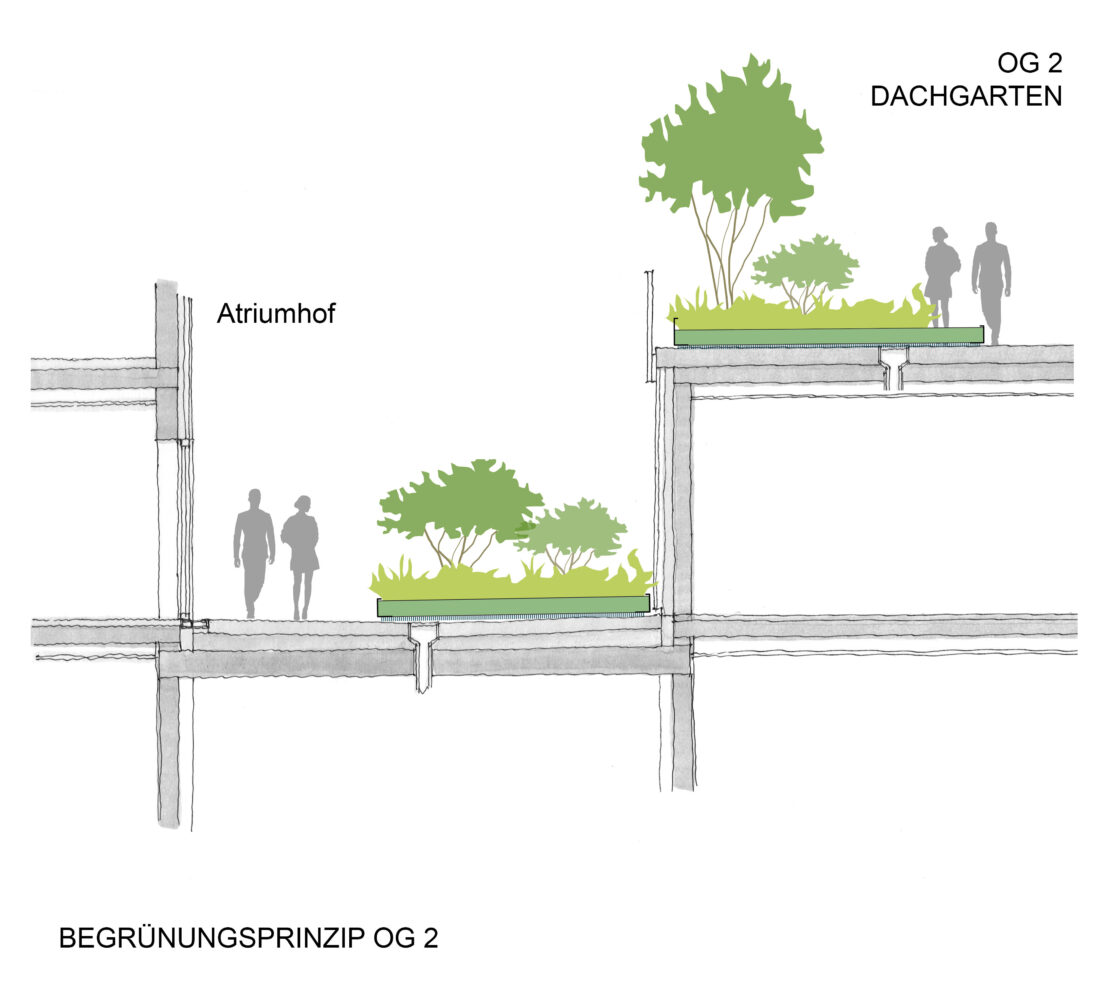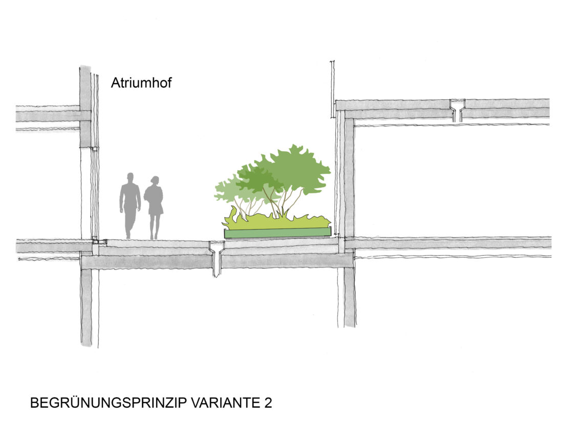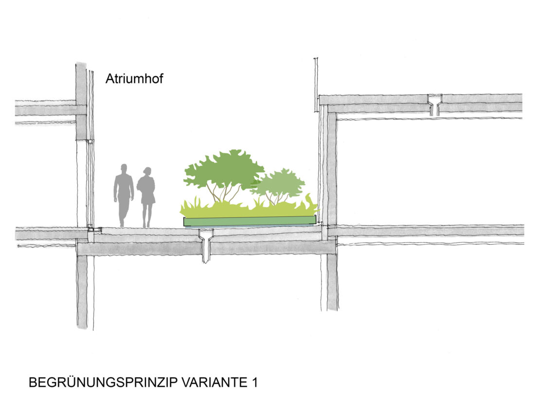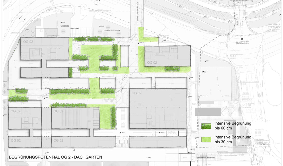 Due to climate change the number of heat days and tropical nights is increasing, along with heat stress on people. Especially in densely built areas, high surface temperatures occur in summer. The feasibility study shows that the surface temperatures on the rooftops of the Med Uni can be significantly reduced through roof greening. Furthermore, the building greening has a positive impact on retention, evaporation and biodiversity. If the greening potential is utilized, users will also benefit from a higher quality of their surroundings.
